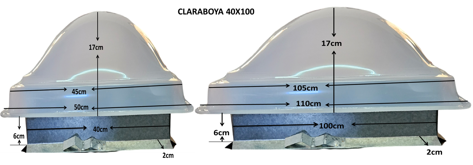 Claraboya Base Galvanizada 40×100 con cupula acrilica blanca